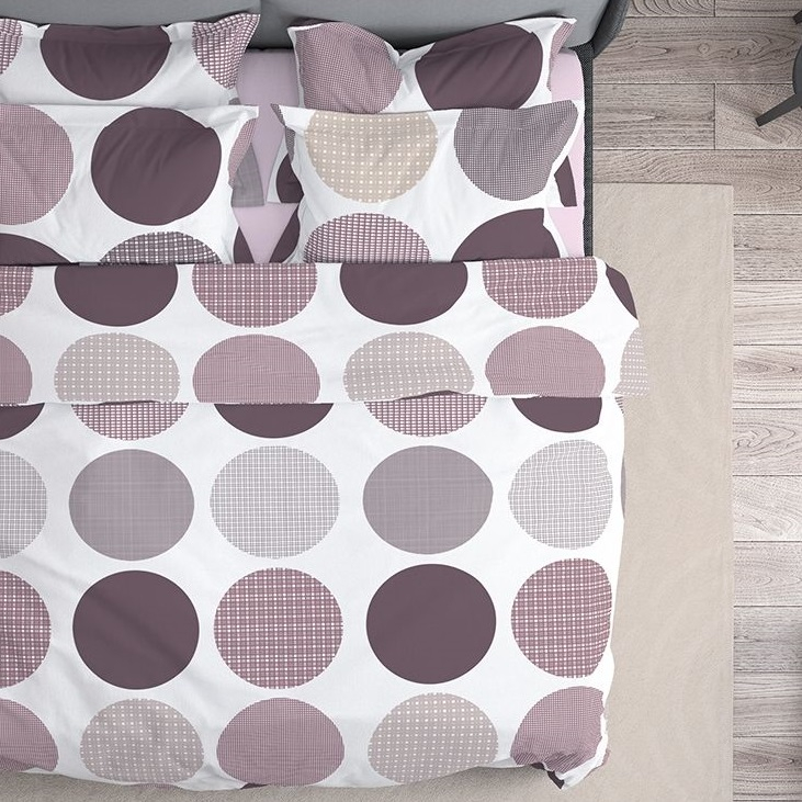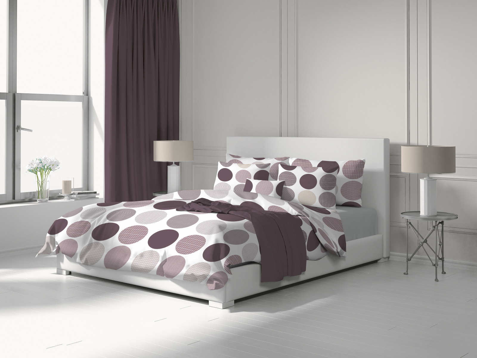 Descoperă lenjeria de pat Ava, un design modern ce combină cercuri în nuanțe de burgundy, roz pal și alb, ideală pentru interioarele contemporane. Realizată din 100% bumbac ranforce, această lenjerie îmbină confortul premium cu rezistența materialului, asigurând o atingere delicată pe piele și durabilitate sporită.