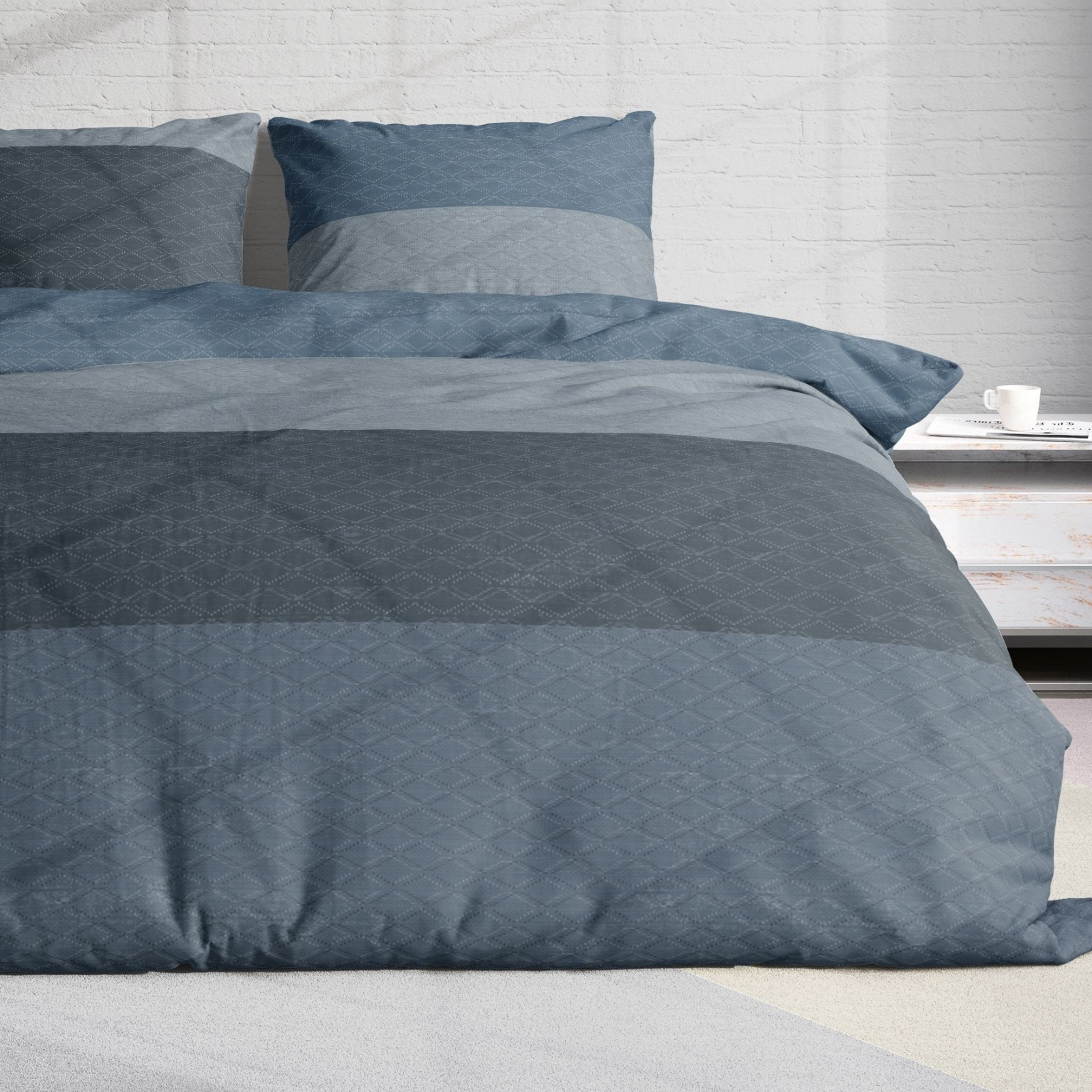 Inspirată de geometria minimalistă, lenjeria Rio combină nuanțe atemporale de albastru și gri, accentuate de modele subtile și elegante. Această paletă cromatică versatilă se integrează perfect în interioarele moderne, conferindu-le un aer proaspăt și elegant.