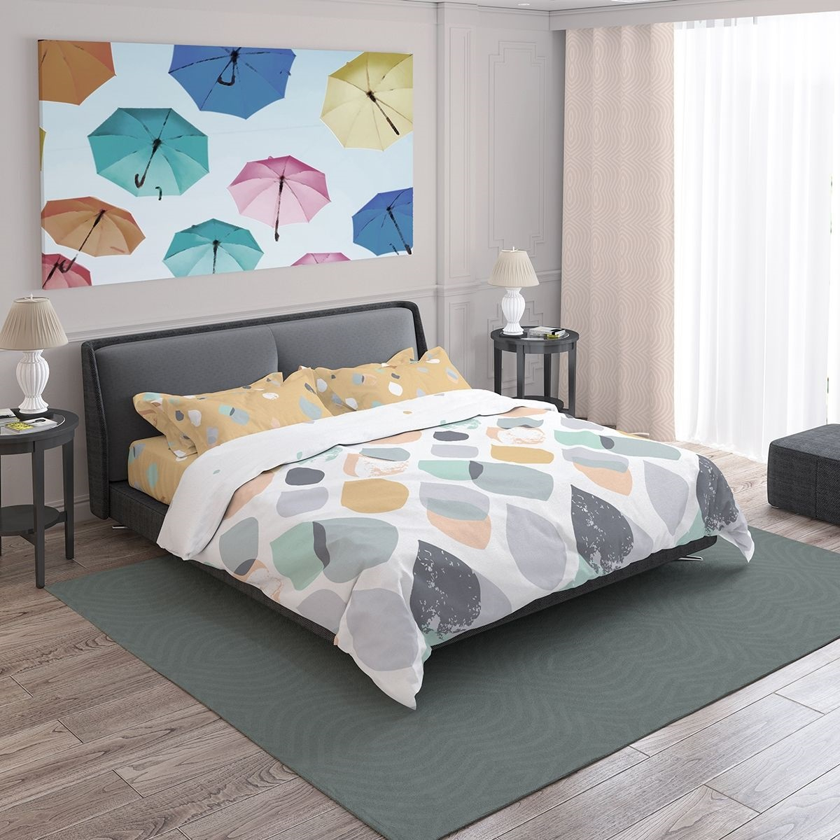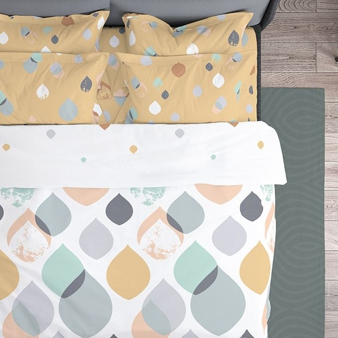 - Design modern: Imprimeurile cu forme geometrice și combinația echilibrată de culori creează un efect vizual captivant și aduc un aer proaspăt dormitorului.