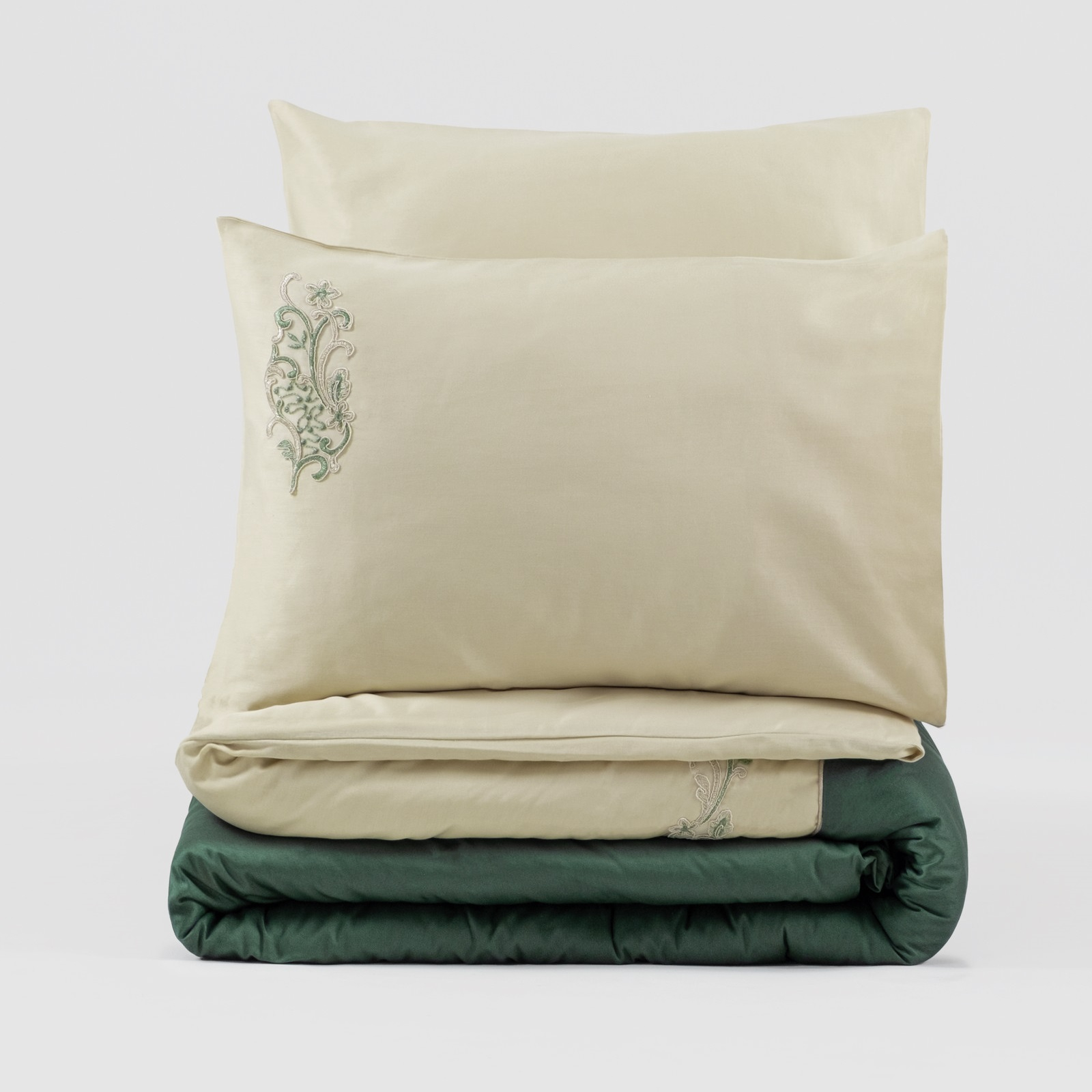 Creată din bumbac satinat de înaltă calitate, cu o densitate de 210 TC, lenjeria de pat Andy se remarcă prin broderiile fine inspirate din natură și tonurile de verde rafinat. Cu un design atemporal, acest set aduce o notă de prospețime și stil dormitorului tău.