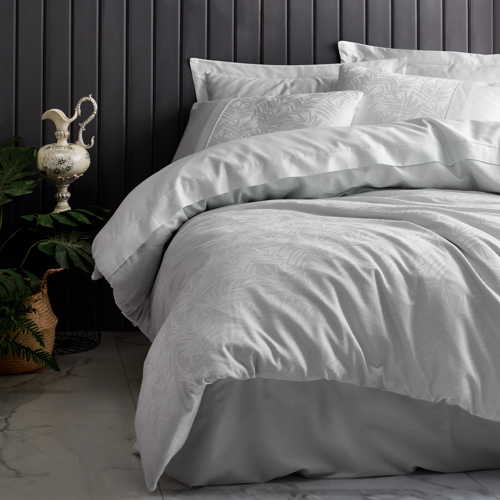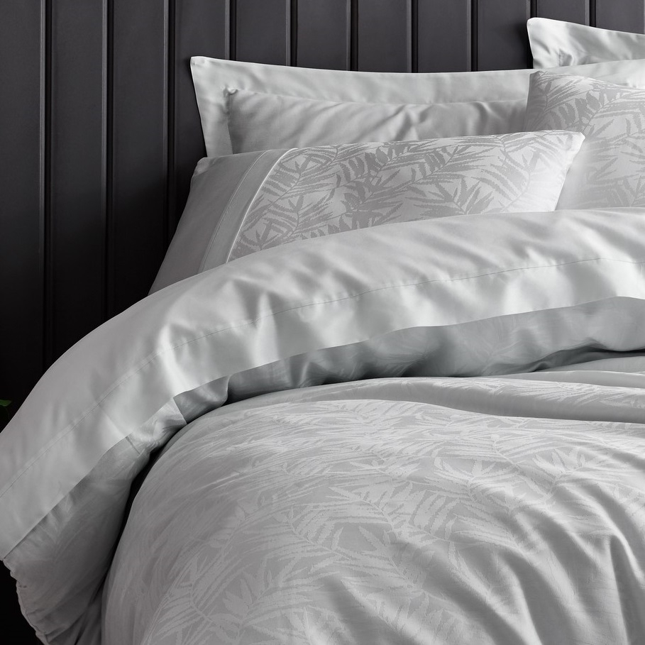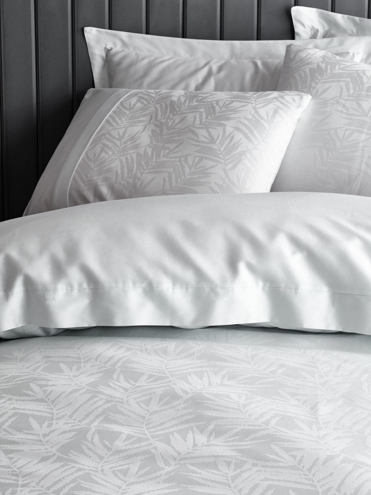 Motivul discret al frunzelor, brodat pe țesătura jacquard, îmbogățește designul cu un accent rafinat, ideal pentru un decor modern și stilat. Broderiile fine și cusăturile impecabile conferă setului o estetică deosebită, iar fețele de pernă oxford cu margini elegante adaugă o dimensiune suplimentară de rafinament și exclusivitate. Fiecare detaliu reflectă o îmbinare a simplității naturale cu eleganța sofisticată.