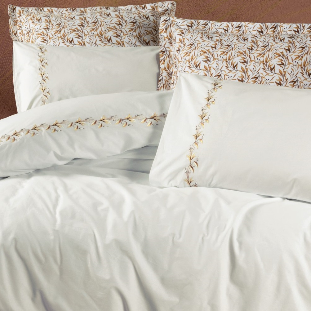 Cu broderii fine inspirate din natură, lenjeria Polite aduce un plus de stil dormitorului tău, punând în valoare un design sofisticat și o atenție deosebită la detalii. Cusăturile delicate pe marginile fețelor de pernă oxford și broderiile de pe husă conferă setului o notă de exclusivitate, îmbogățindu-i estetica cu un aer nobil și rafinat. Fiecare piesă este realizată cu grijă pentru a reflecta o simplitate luxoasă, perfectă pentru cei care iubesc detaliile autentice și naturale.