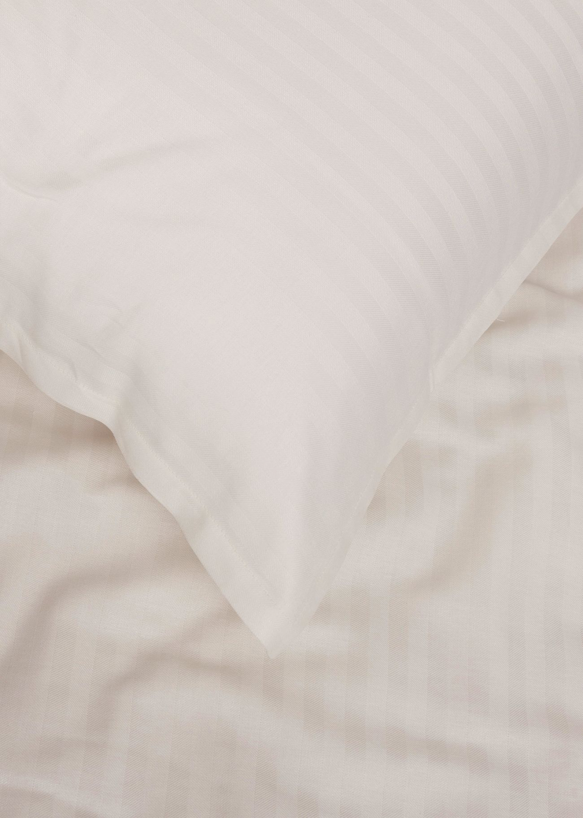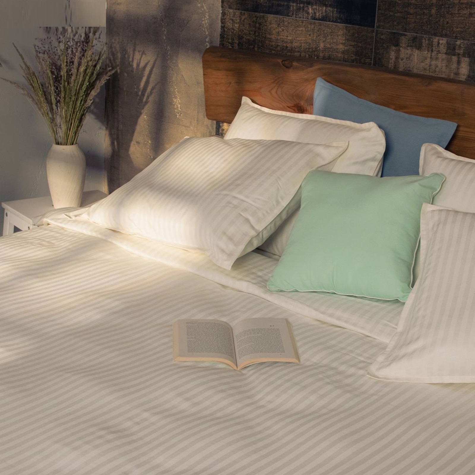 • Material premium: Țesătura din bumbac satinat cu dungi oferă o textură fină și o strălucire subtilă, garantând o experiență de somn plăcută și confortabilă.